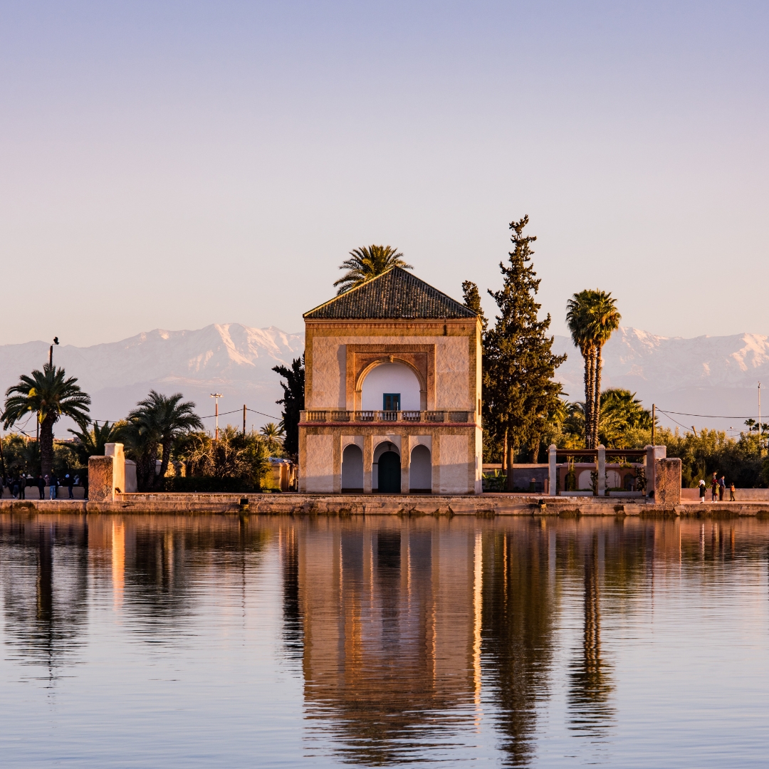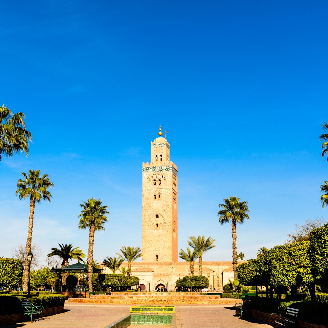 Café da manhã. Partida para o visita da cidade, Marrakech, conhecido como “A Pérola Vermelha”. É, juntamente com Meknes, Rabat e Fez, uma das antigas Cidades Imperiais, possui inúmeros monumentos declarados Patrimônio da Humanidade pela Unesco, o que a torna a principal atração turística do país. Pela manhã faremos a visita monumental começando com o Minarete da Koutobia (século XIII), irmã da Giralda de Sevilha, de esplêndida harmonia é atualmente o farol e centro espiritual de Marrakech. Seguimos em direção aos Jardins Menara e ao Palácio da Bahia, residência do ex- vizir, exemplo da Idade Média muçulmana e onde se destaca a sala de seus embaixadores. A pé, vamos a uma escola para descobrir como são feitas as especiarias marroquinas e o óleo de argan. Breve parada e partida para a Plaza de Jema el F’naum centro nevrálgico da medina, de onde partem todos os becos e souks que a compõem, um dos mais icônicos e animados do mundo. Tarde livre. Hospedagem.Dia 3 – Marrakech – Casablanca – Rabat – Fez: