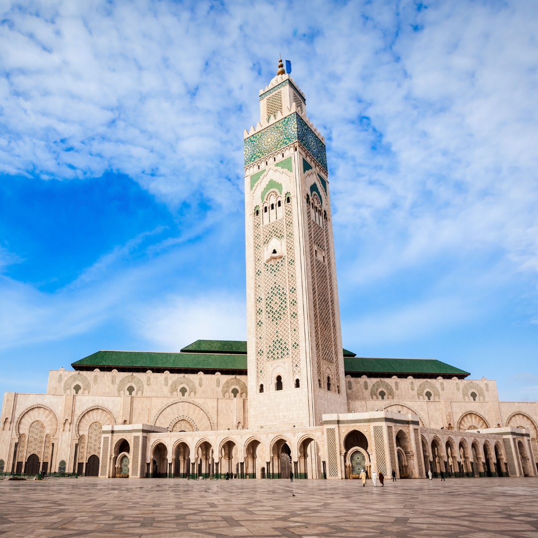 Café da manhã. Na hora programada partida para Casablanca, chegada e visita panorâmica da capital administrativa e industrial do país, Casablanca. Visitaremos o Parque das Nações, o elegante bairro de Anfa e o calçadão Corniche, uma avenida que corre ao longo do mar até chegarmos ao exterior da Mesquita de Hassan II. (Opcionalmente, se possível, se pode visitar o interior onde se destacam seu impressionante telhado e minarete, considerado o mais alto do mundo, com entrada não incluída). Na hora programada, partida para Rabat, capital do Reino. Seu centro histórico foi declarado Patrimônio da Humanidade pela UNESCO em 2012. Passeio panorâmico pela cidade: o Palácio Real (do lado de fora), o Kasbah do Oudaya (século XIII), com vista para o estuário do rio Bouregre, terminando no Mausoléu de Mohamed V, ao lado do qual está a torre inacabada de Hassan. Partida para Fez, chegada ao hotel, jantar e Hospedagem.Dia 4 – Fez: